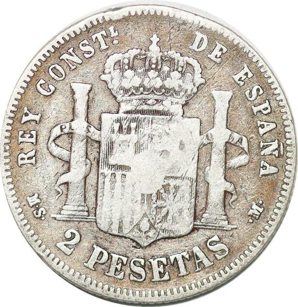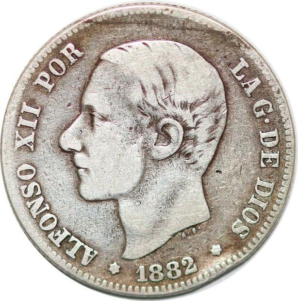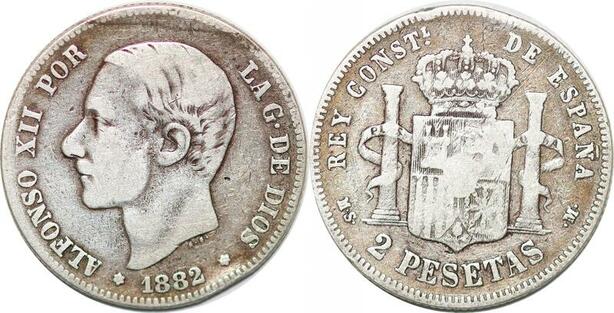P0838 Spain 2 Pesetas Alfonso XII 1882 (82) MS M Silver ->Make offer