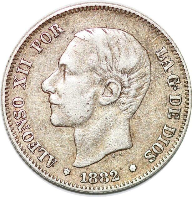P0839 Spain 2 Pesetas Alfonso XII 1882 (82) MS M Silver ->Make offer
