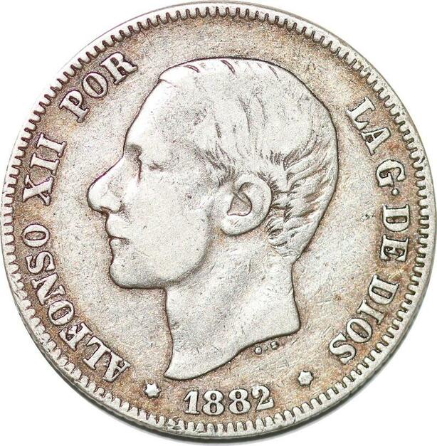 P0842 Spain 2 Pesetas Alfonso XII 1882 (82) MS M Silver ->Make offer