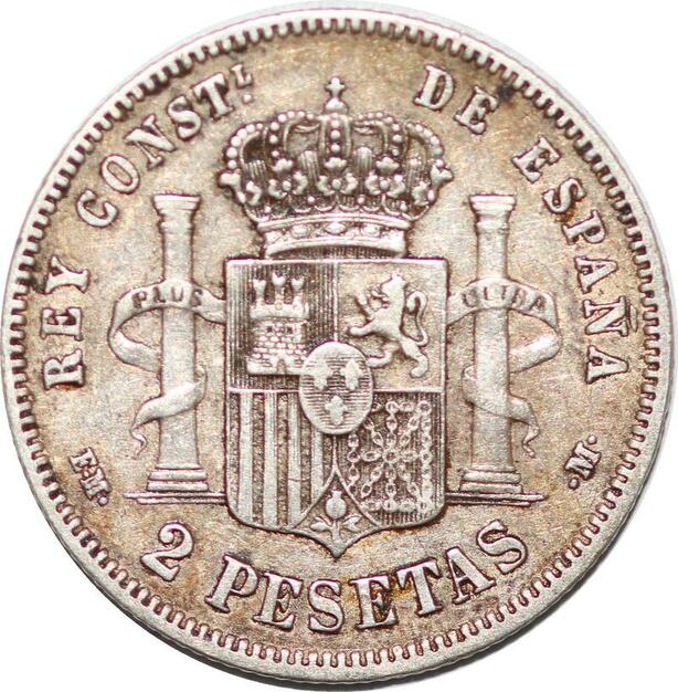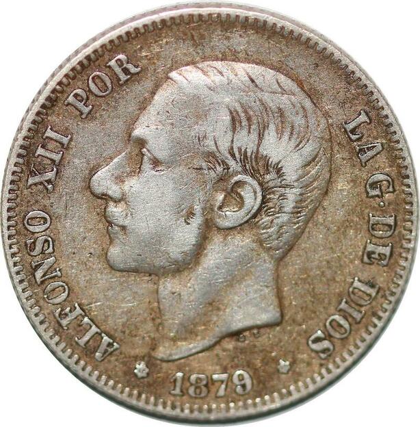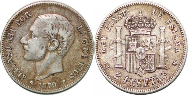 P0843 Spain 2 Pesetas Alfonso XII 1879 (79) EM-M Silver ->Make offer