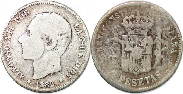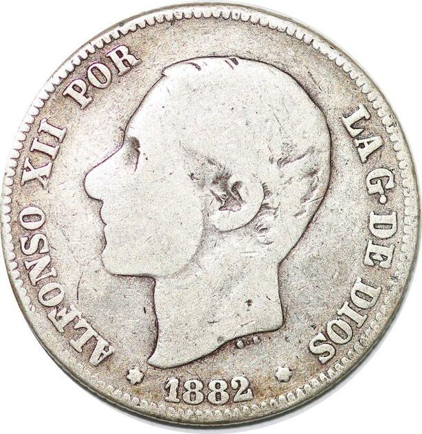 P0844 Spain 2 Pesetas Alfonso XII 1882 (82) MS M Silver ->Make offer