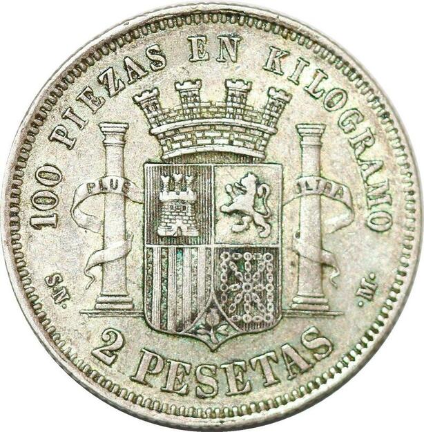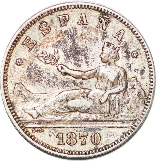 P0850 Spain 2 Pesetas Gouvernement Provisoire 1870 (70) DE-M Silver