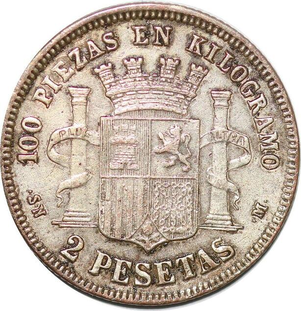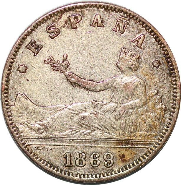 P0852 Fake? Spain 2 Pesetas Gouvernement Provisoire 1869 (69) DE-M Silver