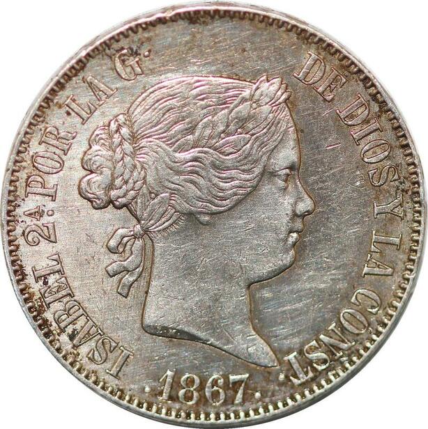 P0855 Scarce Spain Escudo Isabel II 1867 KM#626 Silver UNC -> Make offer