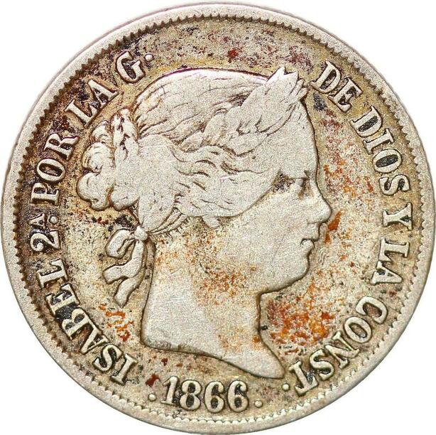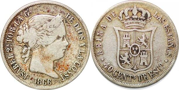 P0856 Spain 40 Centimos Escudo Isabel II 1866 Madrid Silver -> Make offer