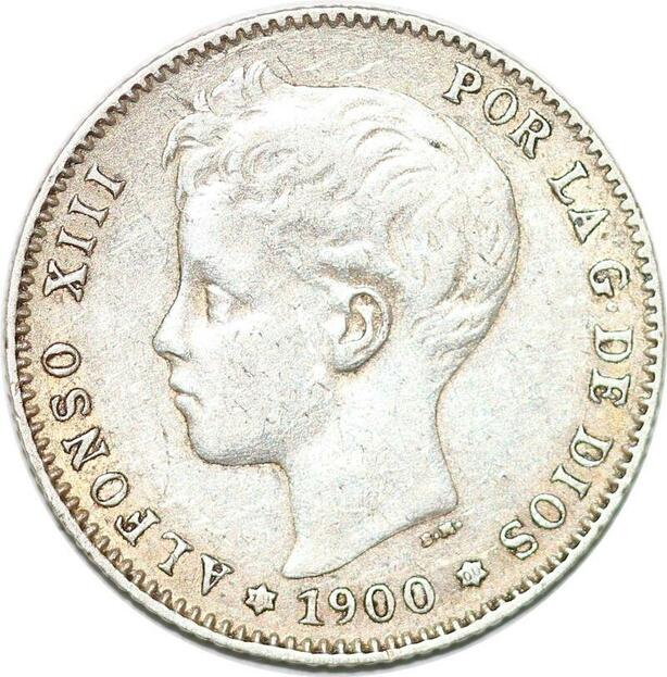 P0864 Spain Peseta Alfonso XIII 1900 SM V Madrid Silver -> Make offer