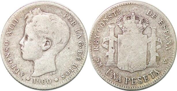 P0865 Spain Peseta Alfonso XIII 1900 SM V Madrid Silver -> Make offer