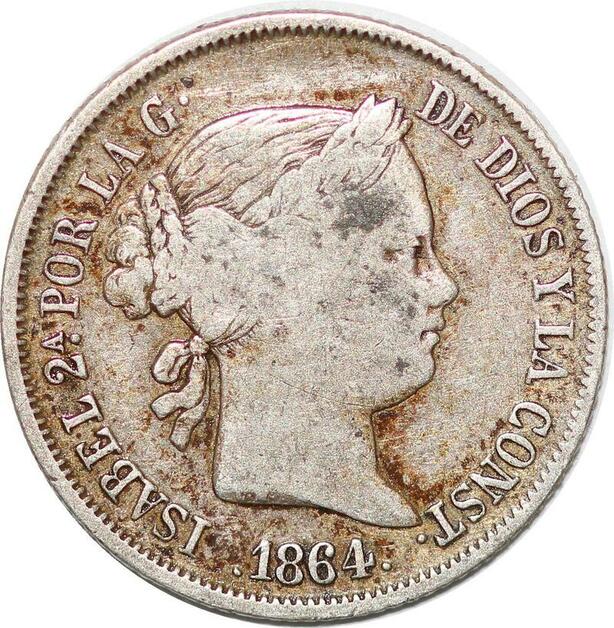 P0871 Spain 40 Centimos Escudo Isabel II 1864 Madrid Silver -> Make offer