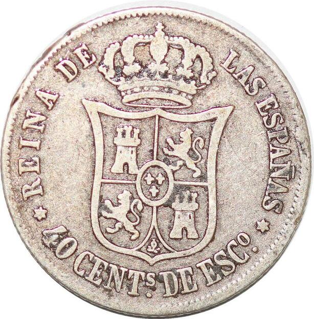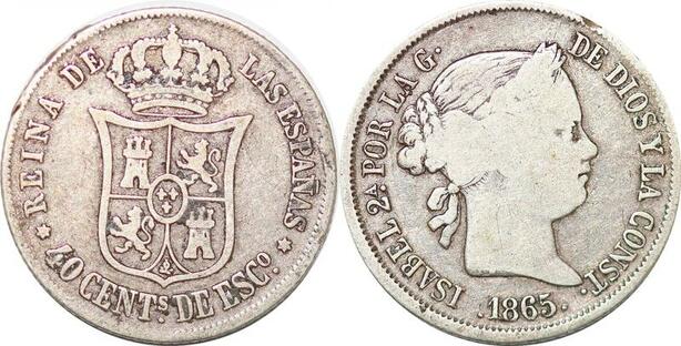 P0872 Spain 40 Centimos Escudo Isabel II 1865 Madrid Silver -> Make offer
