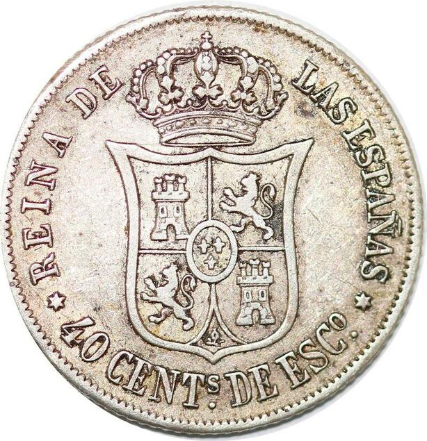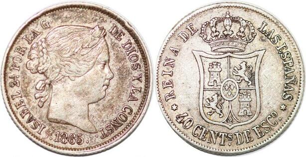 P0876 Spain 40 Centimos Escudo Isabel II 1865 Madrid Silver -> Make offer