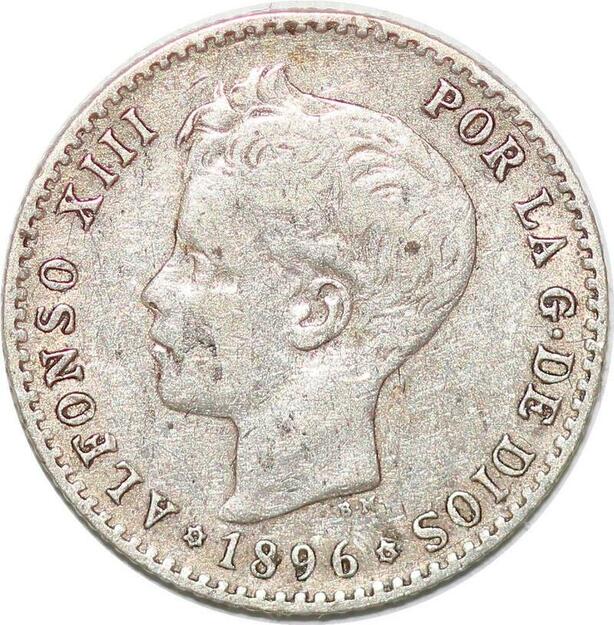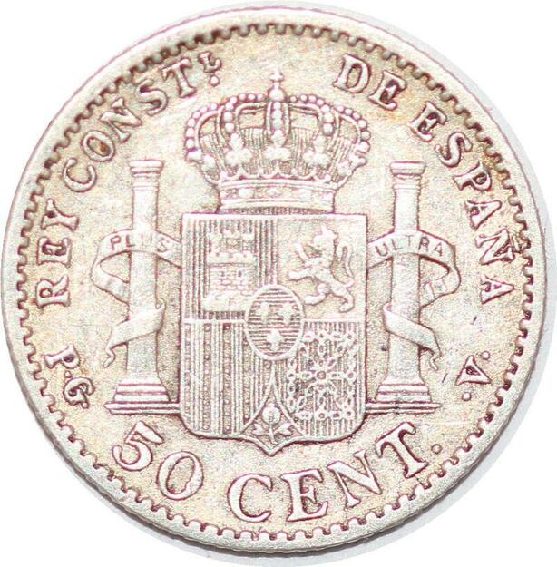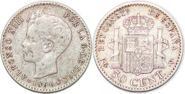 P0890 Spain 50 Centimos Alfonso XIII 1896 (96) PG V Silver ->Make offer