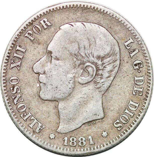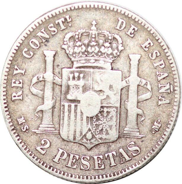 P0898 Spain 2 Pesetas Alfonso XII 1881 (83) MS M Silver KM# 678 -> Make offer