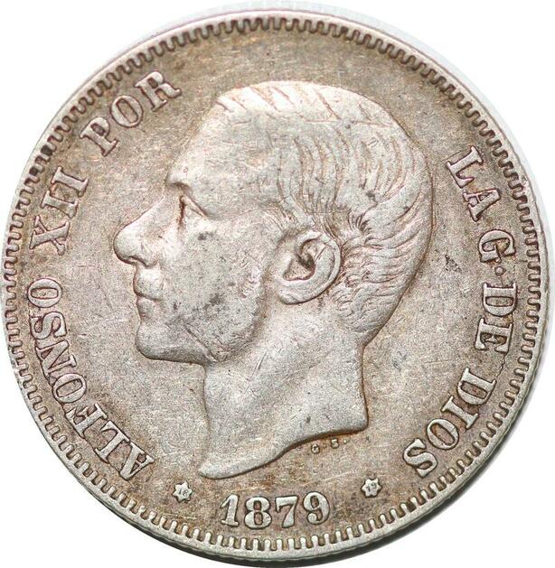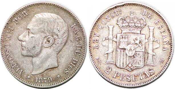 P0899 Spain 2 Pesetas Alfonso XII 1879 (79) EM-M Silver -> Make offer