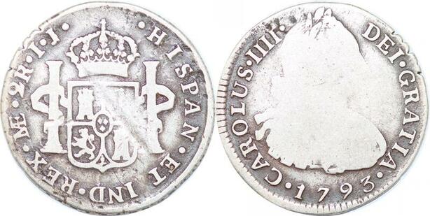 P0920 Peru 2 Reales Carlos IV 1793 IJ Large Bust Silver ->Make offer
