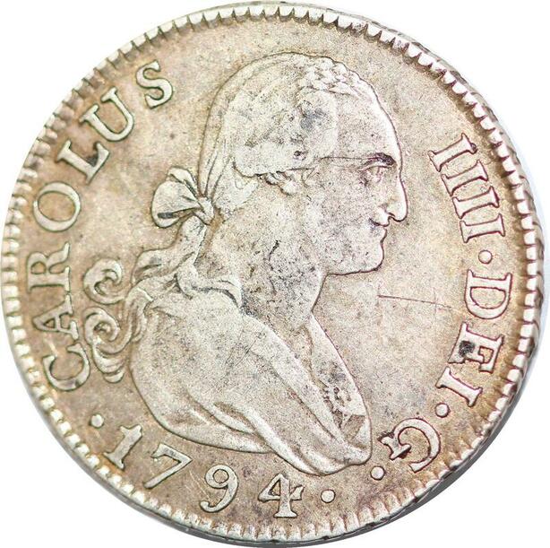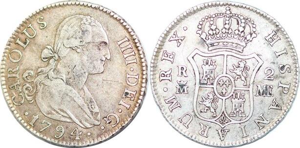 P0923 Spain 2 Reales Charles IV 1794 MF M Madrid Silver ->Make offer