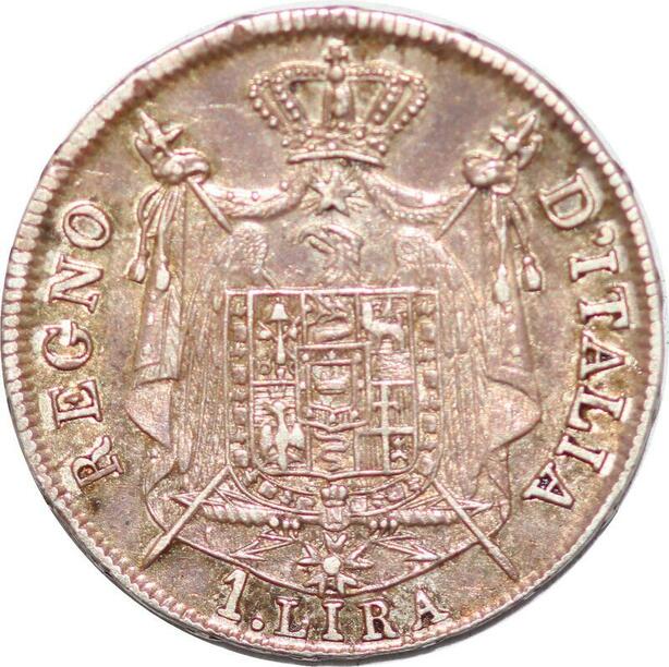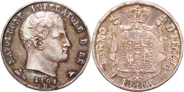 P0945 Scarce Italy 1 Lire Lira Napoleon 1808 B Bologna Silver AU !!! -> M offer
