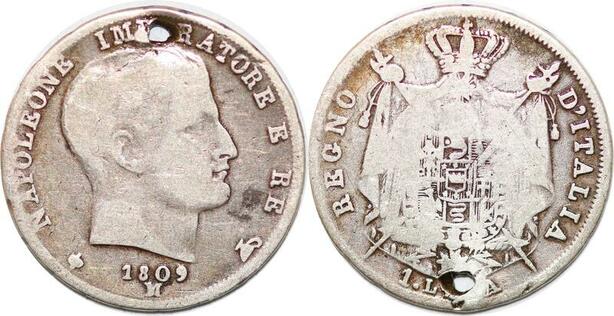 P0947 Italy 1 Lire Lira Napoleon 1809 M Milan Silver -> Make offer