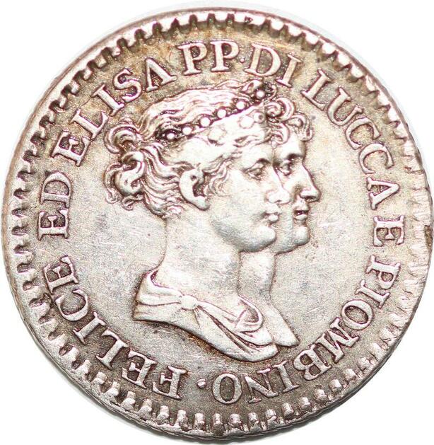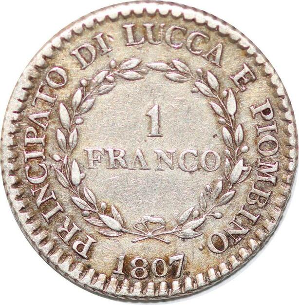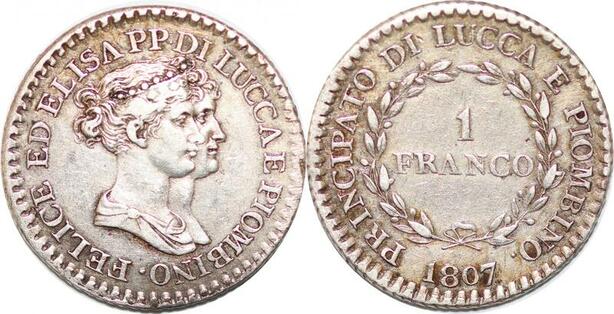 P0960 Italy Lucca Un Franco 1807 Felix and Elisa Silver Quality XF+/ AU