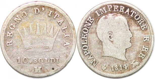 P0968 Italy 10 Soldi Napoleon I 1814 M Milan Silver -> Make offer
