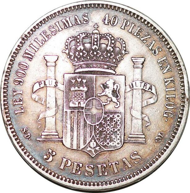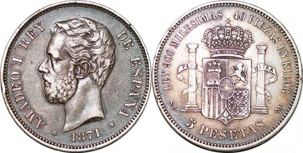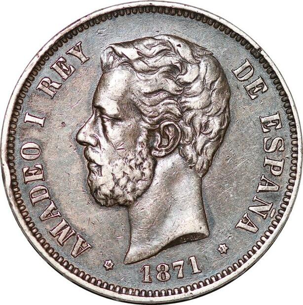 P0976 Spain 5 Pesetas Amadeao I 1871 (71) SD M Madrid Silver -> M offer