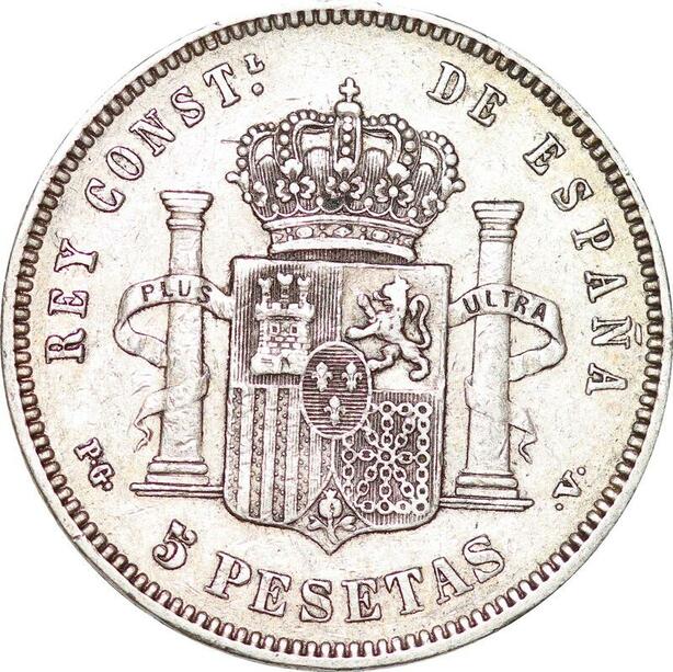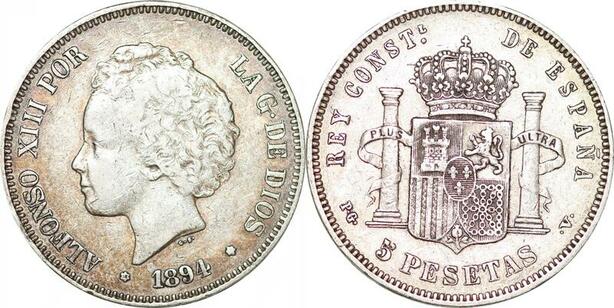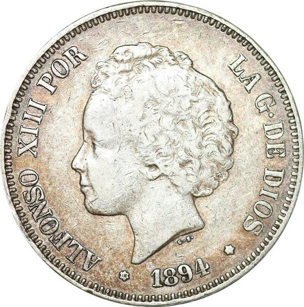 P0978 Spain 5 Pesetas Alfonso XIII 1894 (94) PG V Madrid Silver -> M offer