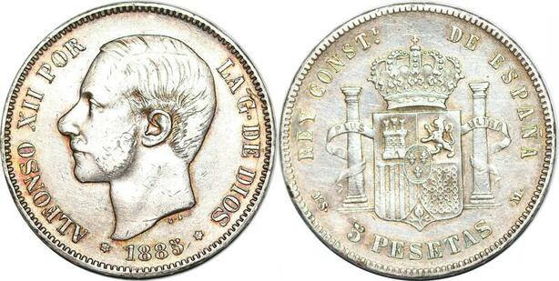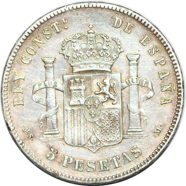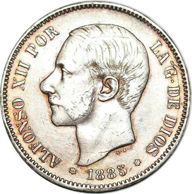 P0980 Spain 5 Pesetas Alfonso XII 1885 (85) MS M Madrid Siver ->Make offer