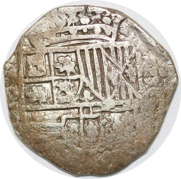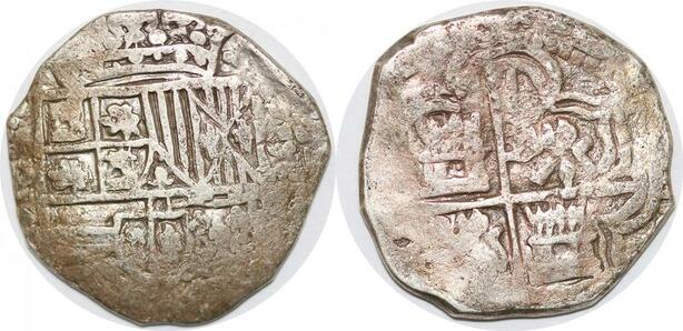 P0987 Scarce Potosi Bolivia cob 2 Reales Philip III Assayer R Silver