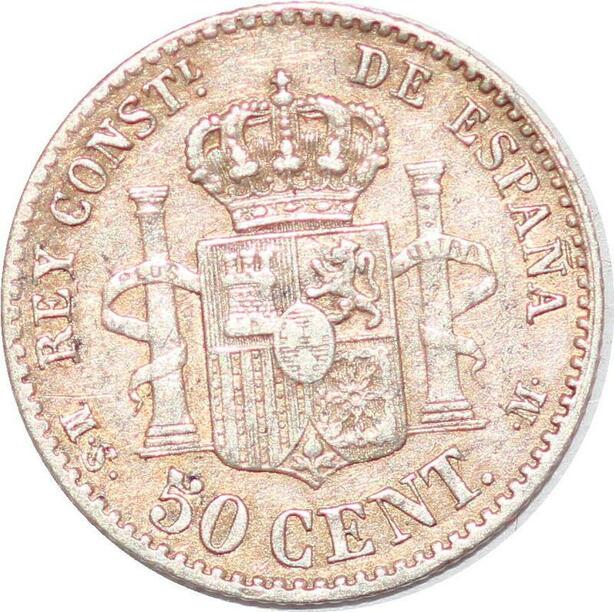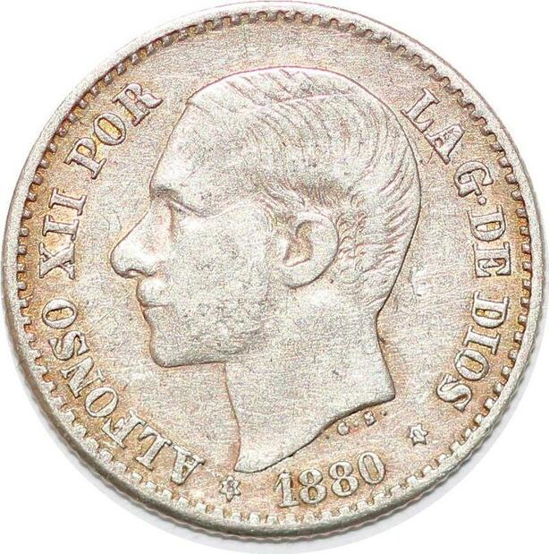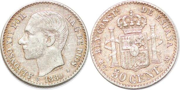 P1006 Spain 50 Centimos Alfonso XII 1880 (80) MS M Silver ->Make offer