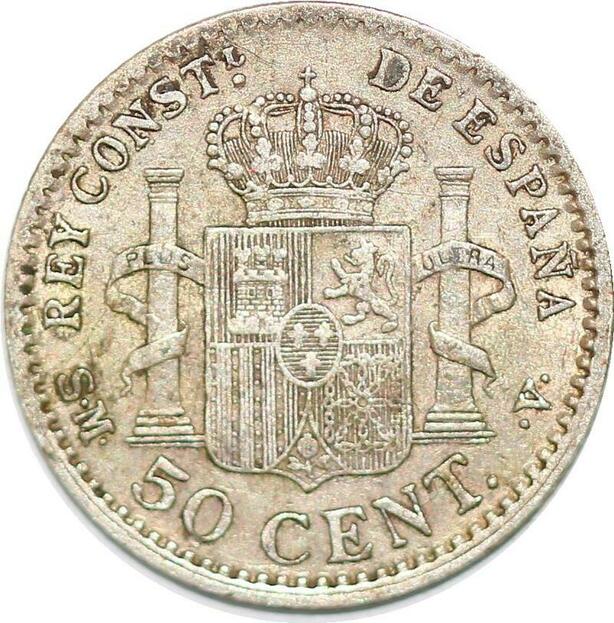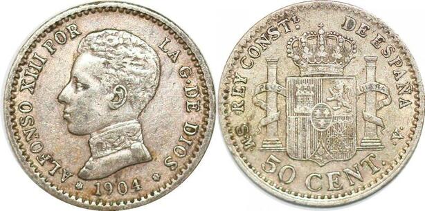 P1007 Spain 50 Centimos Alfonso XIII 1904 (04) SM V Silver ->Make offer