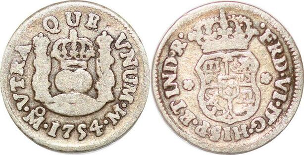 P1008 Mexico Spanish colony 1/2 Real Ferdinand VI 1754 Silver ->M offer