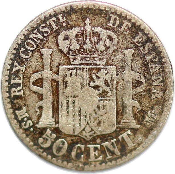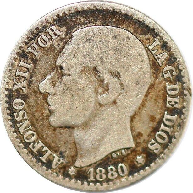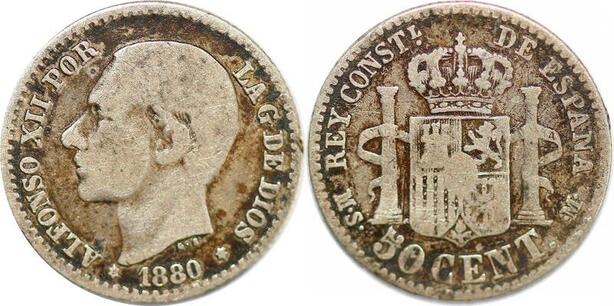 P1021 Spain 50 Centimos Alfonso XII 1880 (80) MS M Silver ->Make offer