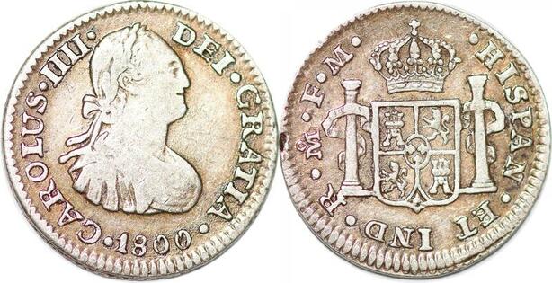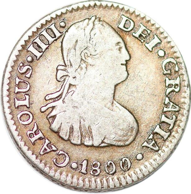P1026 Mexico Spanish Colony 1/2 Real Charles IV 1800 Mo FM Silver XF+ ->M offer