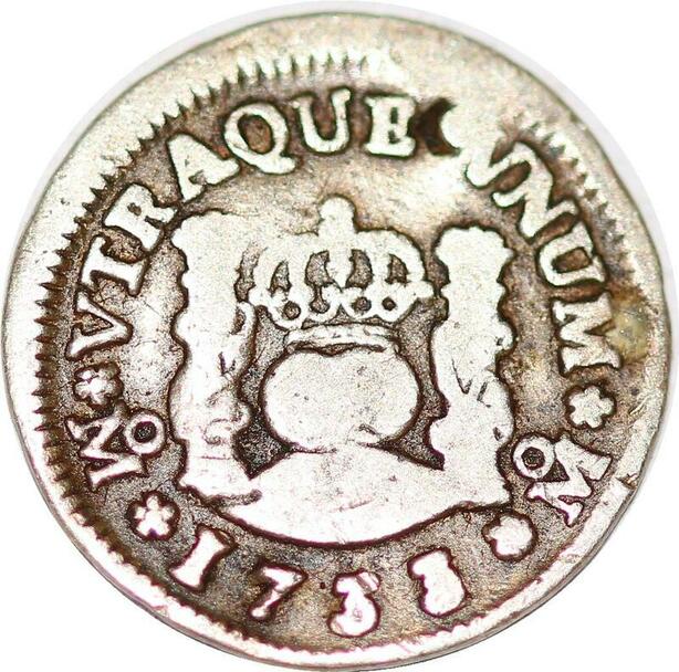 P1035 Very Scarce Mexico 1/2 Real Philip V 1733 Mo F Silver ->Make offer !!!!!
