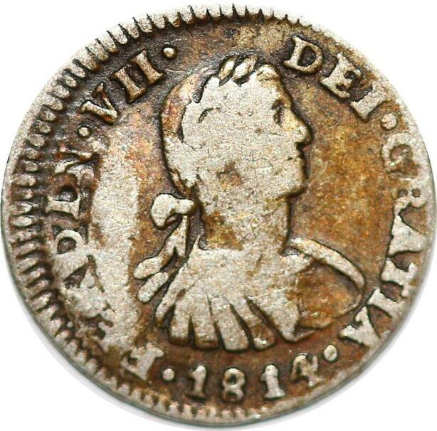 P1037 Mexico Spanish Colony 1/2 Real Ferdinand VII 1814 Mo JJ Silver