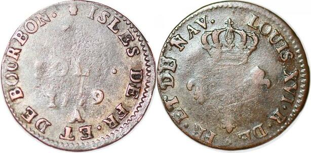 P1038 Scarce Reunion île Bourbon 3 Sols Louis XVI 1779 A Paris Silver