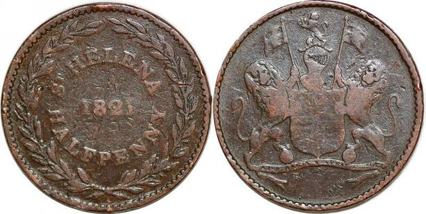 P1082 Medal Saint Santa Hélène Half Penny 1821 ->Make offer
