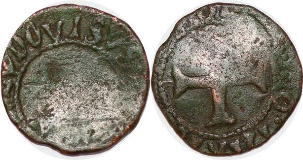 P1160 Rare France Denier Dauphiné Louis II Obole 1445-1456 Erreur Ludovisus