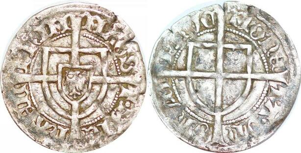 P1202 Scarce Poland Teutonic Order Johann von Tiefen 1489-1497 grosz Klippe XF