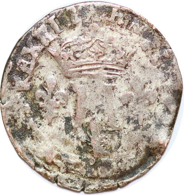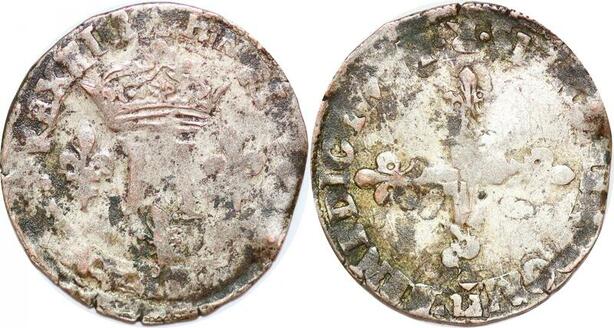 P1225 Rare Double sol parisis Henri III 1574 1589 R Villeneuve les Avignon