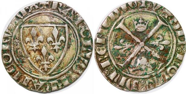 P1244 Rare France Blanc Guénar Charles VI 1368 1422 Romans Argent Silver ->Make offer