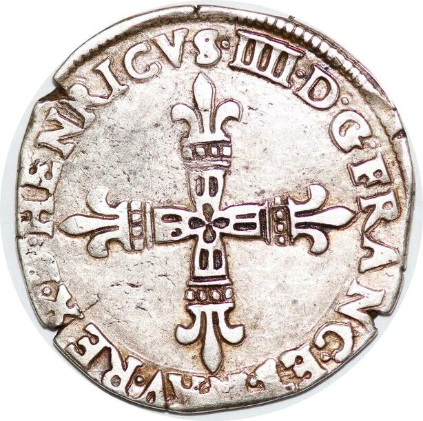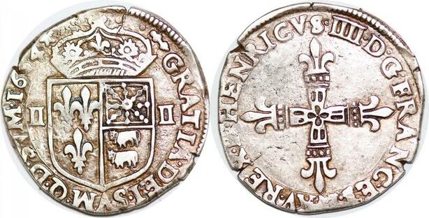 P1255 Rare France 1/4 ecu Henri IV 1604 bearn Moorlaas Argent ->Faire offre