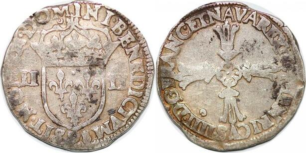 P1258 Rare France 1/4 ecu Henri IV 1604 9 Rennes Argent ->Faire offre