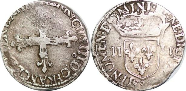 P1267 France 1/4 Ecu Henri III 158- 9 Rennes Argent Silver ->Faire offre