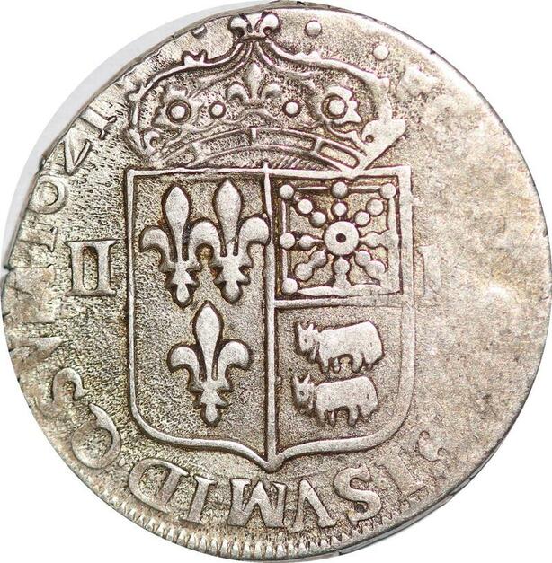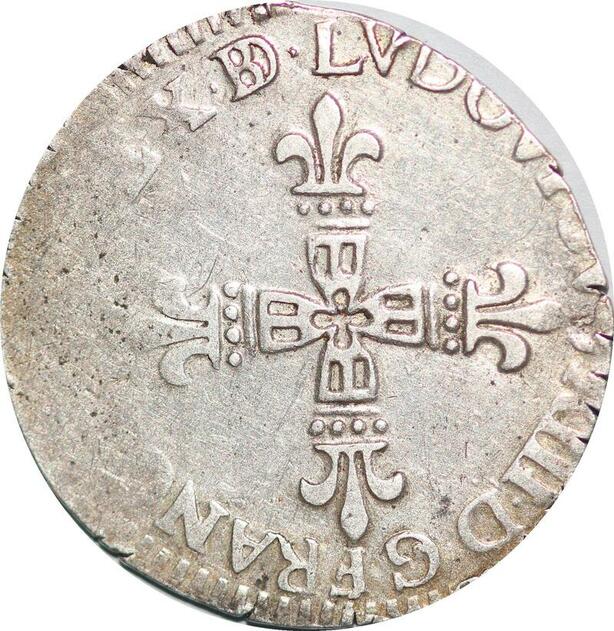 P1271 Rare France 1/4 Ecu Louis XIII 1621 Fleurdelisée Bearn Frappe médaille Argent