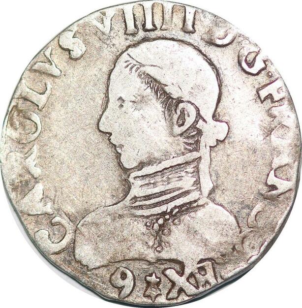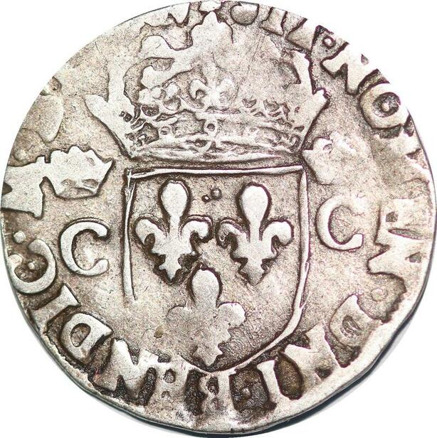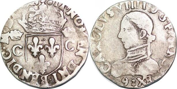 P1278 Rare France 1/2 Demi Teston Henri III au nom de Charles IX 9 Rennes Argent