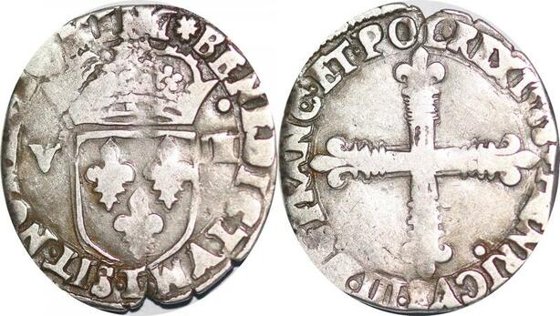 P1281 France Henri III 1/8 Ecu 1588 T Nantes Silver ->Faire offre