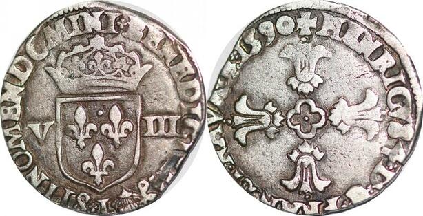 P1282 France Henri III 1/8 Ecu 1590 L Bayonne Argent ->Faire offre
