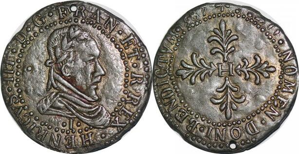 P1285 Rare France 1/2 Demi Franc Faux Epoque Henri III au col plat 1587 I Limoges SUP