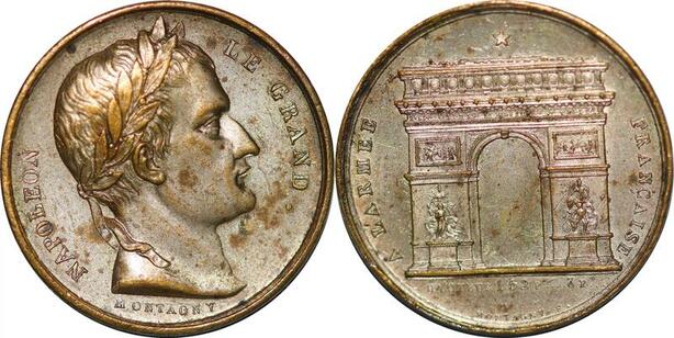 P1349 Rare France Médaille Napoléon Le Grand Montagny Armée Arc de Triomphe SPL