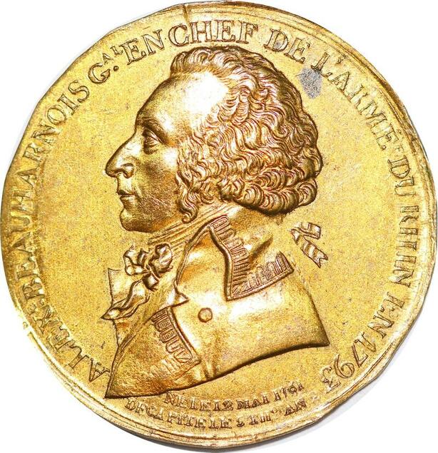 P1366 Rare France Uniface Convention Alexandre Beauharnais général Armée Rhin 1793 SUP